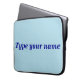 Light blue laptop sleeve that you can personalize by typing your name. You can also change the font style, font color and the laptop sleeve color in the design tool. Please check the appearance after typing your name. If the appearance is pleasing to you, you can place your order now. If you need to resize or reposition your name, please adjust in the design tool.