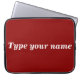 Red laptop sleeve that you can personalize by typing your name. You can also change the font style, font color and the laptop sleeve color in the design tool. Please check the appearance after typing your name. If the appearance is pleasing to you, you can place your order now. If you need to resize or reposition your name, please adjust in the design tool.