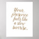 A truly heartfelt and evocative quote: "Your presence feels like a slow sunrise."