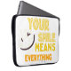 Brighten your workspace with this cheerful “Your Smile Means Everything” laptop sleeve!