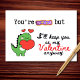 For the person you adore most—quirks and all. This playful Valentine features a cute green dinosaur hugging a big red heart, with the front message: “You’re weird but I’ll keep you as my Valentine anyway.” The inside is blank so you can write your own note, whether you want to keep it sweet, lightly sarcastic, or both. A fun pick for partners, spouses, boyfriends, girlfriends, or your favorite weirdo.