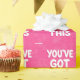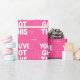 Playful motivational text chunky rounded typography in white on pink textured background.