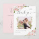 Dessa enkla och eleganta bröllop tack-kort pryds av romantiska rosa rosor med gröna blad och mjuk grå text på en ren vit bakgrund för en look som lyckas vara både trendig och vintageinspirerad. Lägg till din monogram och foto för att anpassa, och lägg till ditt meddelande på den rosa baksidan.