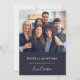 En snyggt, modernt företagslag, Julhälsningar ett platt bildkort med fet typografi och citat "Holiday Greetings" i vitt med marin blå bakgrund färg. Hälsning och företaget namn kan enkelt anpassas till kostym i ditt eget företag. Utformningen innehåller ett valfritt meddelande till dina kunder på andra sidan för att tacka dem för deras verksamhet och lojalitet och önska dem fred, välstånd och glädje i julhelgen. Ett trendig, en roligt och en professionell för att visa ut den här julhelgen! Bilden som visas är endast avsedd som illustration för att ersättas med ditt eget team porträtt eller annat foto. Platshållarbilden består av ett lycklig-team på sex personer som sitter på ett snyggt stadskontor.