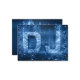 Unik DJ-visitkort med en abstrakt blåttis som exploderar DJ-symbol på ett mörksvartkort. En professionell Dj och producentvisitkort!