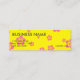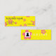 En rolig gult- och rosavisitkort. Skräddarsy dessa kort till passformen din affär. Tillfoga din logotyp- och anpassningsbartext för att betona bakgrunden. Visa din yrkesmässighet till och med dessa stilfulla visitkortar. De små korten står ut som något som är olik och som är unik. Get märkte och beundrade med denna yrkesmässiga design. Precis om varje person, som ser dessa card något att säga, "är dessa dina visitkortar?", De får märkte, dem är olika. Ganska än sitta i en bunt av identiska kort står dessa ut. Detta format av för kort stativ bestämt ut, därför att de är olika och roliga. De passformen i plånböcker och stoppa i fickan lätt. Du kan bära två gånger så många orsakar dem är halvan formatet. Även rymmer ska svaga magneter upp dessa skönhetar på kylen.