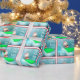 Lustigt surfande helgdag-gåva med Surfer Jultomten rider på en surfboard. Så här anpassar du redigeringstexten för att lägga till namn.
