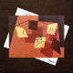 Ett fint konstbrevkort med målningen av Paul Klee (1879-1940) med titeln, Ytspänning (1930). En tredimensionell abstrakt målning av fyrkanter i bruna och gula nyanser. Klee var schweiziskfödd tysk expressionistisk konstnär som utforskade och studerade färgteori.