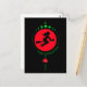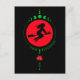 Red and grönt Yule-design med måne, häxa på en bom som dekorerats med ljus och en present.