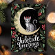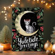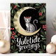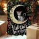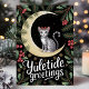 Önska någon en perfekt helgdag med det här fantastiska Yuletide-kortet med en söt katt sitta på en crescerande måne. Omringad av festlig holly och gräs grenar mot en stjärnkväll himmel, ger det här vismkortet helgdag glädje med en extra-beröring av kattdjur charm. Perfekt för kattälskare och alla som har magi under festsäsongen.