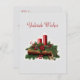 Två röda ljus omges av festive grey, gräs-koner och röda bär på en dekorativ logg. Med en glödeffekt markeras den arrangemanga inställningen mot en grått-bakgrund.
