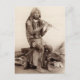 Porträtt om en Yuma-man i kroppsfärg, sittande, vänd framtill, med flöjt. På hans fötter spelar tre kort ansikte upp. Foto (c1870-1912) från Isaiah Taber/LOC.