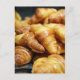 Yummy gyllene krispy croissant-fotovykort, med en överraskad söt flicka Tour Eiffel inslag på baksidan.