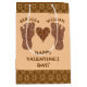 Denna brunt och solbrända Bigfoot gåva hänger lös med en fanciful lyckliga valentin för gränsnågot att säga dag med rum för dina personlignamn över de Sasquatch fotspåren. Förskönat med en brun hjärta för att matcha det original- Bigfoot konstverk, hänger lös denna valentingåva i medel är för koppla ihop som föredrar unikt och ovanligt.