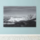 Ett svart och vitt foto ger en häpnadsväckande bild av bildningen i sten vid Zabriskie Point in Death Valley nationalpark. Bilden visar en rad tåliga toppar och dalar, med dramatiska skuggor över landskapet. Himmel är överbelastat med kloka moln, vilket ökar känslan av storhet och .