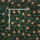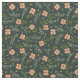 Ömtåligt tygmönster med handmålade akvarell små korallrosa blommor och blad på mörkgrön bakgrund. Bra val för quilting, klänningar och heminredning.