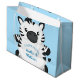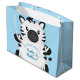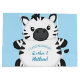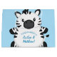 En förtjusande tecknad zebra babydusch som är perfekt för en safari party! Den söta zebra har en blå bakgrund som gör det underbart för en pojke på vägen!