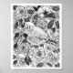 Zebra finch och ro bush bläck teckning poster