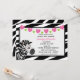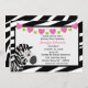 Cute Zebra med bakgrunden A zebra tryck och en banderoll för rosa och grönt. Perfekt för den lilla flicka som kärlek djungeldjar djur och särskilt zebröder. Fira din vild med den här vackra zebra-födelsedagsinbjudan.