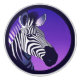 Porträtt av en zebra i lila stil som var populär på 1980-talet.