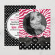 En mycket modern och snyggt söt sextonde födelsedagsfest inbjudan för glansflickor. Shock rosa och vit zebra rand med mönsterad bakgrund och svartvit polkadot mönster-design. Med en söt faux glitter ser det svarta band med färgad som är bundet i en bog, en snabb finare märkre med hennes födelsedagskalenummer och ett cirkelformat ram för ditt fotografi. Inbjudan alla hennes flickvänner till en speciellare födelsedagsfest firande med detta söt feminin-, mode- och trendig-kort. Det finns flera enkla sätt att anpassa textområden på baksidan för din födelsedagsflickas namn och alla uppgifter om sömnaren eller firande party samt kontaktinformation för osa, med nyckel-text i matchande intensiv rosa-skuggning. Klicka på knappen Anpassa för att ändra storlek på eller flytta fotot om det behövs och se till att det täcker hela fotoområdet.