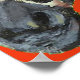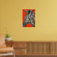 En återgivning av en originalmålning av Georgia Pistolis. Det reproduceras digitalt med röd bakgrund. Bilden görs i tre andra färg och går bra som en gruppering.