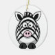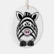 Vem är inte kärlek zebröder? Det är bara något tilltalande med dessa svarta och vita djur som tilltalar många människor. Därför kommer den här prydnaden att se så bra ut på Julgran. Bilden på detta prydnadsföremål är i grund och botten en svart och vit tecknad zebra och den är verkligen söt!