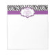 Det här anteckningsblocket handlar om att vara en flicka. Zebra tryck har en slående bakgrund för ett ornat ram på en polka-punkt, starkt lila-band. Ett namn eller annat budskap visas i ram omgivet av utsmyckningar. Finns i alternativ färg med matchande produkter.