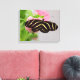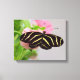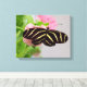 Vackra zebra som längtar efter fjäril sitter på muterad blomma.