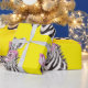 Zebra med Rosa Glass Wrapping Papper Gult BG AI-design