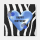 Önska någon i grattis på födelsedagen med den här coolan zebra mönstrad design med ett hjärta som accentueras av ballonger!