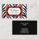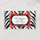 Zebra mönstrad och röd krusidull visitkort