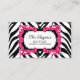 ©Socialitedesigner 2010. Stå ut i folkmassan med denna elegant och sätta en klocka på zebra mönstrad visitkortdesign. Stilsortsstil kan ändras.