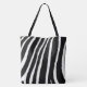 Svartvitt klassiskt Zebra mönstrad Tote Bag har det svarta och vita lodrät rand mönster på zebröder. Detta djurtryck är snyggt och sofistikerat. Besök vår butik på zazzle.com/VicesAndVerses om du vill se fler kläder, kort och presenter för hela familjen.