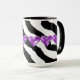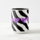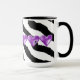 En klassutskrift av zebra päls med lila hjärtan accenter i mugg, ändra stilar efter behov.