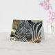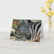 Från ett foto av en zebra nära, som pockar med huvudet vänt mot sidan. Copyright by Brenda Thour 2010.