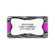 Den här adressetiketten har en svart och vit zebrisk randig bakgrund, en vit parentesform i mitten och anpassade för ditt namn och kontaktinformation. Ett starkt rosa vågrät rand ge betecknar detta färg.