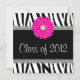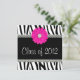 Zebra Examen Inbjudan. Ett stilrent svart och vitt zebramönster med en het rosa diamant tusenskönsblomma grafik. Anpassa enkelt med dina evenemangsuppgifter! En flickig och modern examen inbjudan. Perfekt för en gymnasieexamen, högskoleexamen eller examensfest!
