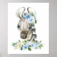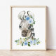 Lägg till de sista detaljerna i din babys rumsinredning eller barnets sovrum med dessa vackra konsttryck! Designen innehåller zebra, blå akvarellblommor och grönska.