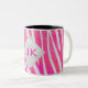 Zebra Shock rosa och White med Monogram Två-Tonad Mugg