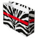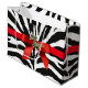 Stor glansig presentväska med en bild av ett imponerande svart och vitt zebra tryck och ett rött band, rött båge och guld zebra charm som tillval. Se matchande medelstora presentsäck. Se hela samlingen Safari Gift Bag i SPECIELLA TUUCHES | Avsnittet Party favors.