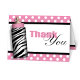 Snyggt och modern Baby Shower tack för att du kort designat med en flaska i zebra tryck mönster över vit polka dots på rosa. Insidan är en anpassningsbar som skrivs ut med ditt eget tackmeddelande och som är signerad med ditt namn, eller så kan du enkelt ta bort malltexten om du vill lämna meddelandeområdet tomt om du vill skriva dina känslor för hand. Tack för att du har kort på rosan i zebra tryck baby är perfekt för din zebra tryck eller zebra-temerade babydusch firande. Ingen minimiorder. Bulkrabatter gäller.