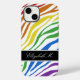 Snyggt anpassningsbar fodral personlig med ditt namn och designad med ett zebra tryck mönster med vitt och regnbåge zebra ränder. Anpassa ditt namn och välj mobil modell för att välja rätt fodral.
