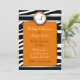 Mycket orange med zebra tryck och ett monogramemblem. #chic #födelsedag #inbjudningar