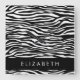 Zebra tryck, Rand, svart och vitt, ditt namn Fyrkantig Klocka