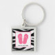 Zebra tryck- & rosaflinflip flopspersonlig fyrkantig silverfärgad nyckelring