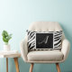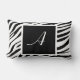 Snyggtens anpassningsbar tryckte 21 x 13 tum dekorativ kudde designad med en svart och vit personlig zebra tryck mönster med din inledande vita över en svart kvadrat.