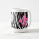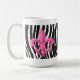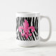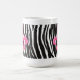 Kaffemugg i den sassy populära svarten & zebra mönstrad vit. Utskrivavet med en shock rosa fleur de lis.