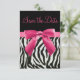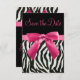Eleganta personliga "Spara datum"-bröllopskort med vacker svart-vit zebratryckt falsk pälsrandig mönster och en söt rosa tryckt rosett och band. Dessa klassiska glamourösa inbjudningar är dekorerade på båda sidor. Feminina, snygga, trendiga, moderna inbjudningskort. OBS: ALLA INBJUDNINGAR PÅ ZAZZLE HAR PLATTA UTRYCKTA BILDER. Text, typsnitt och typsnittsfärg kan alla anpassas. Om du behöver hjälp med att anpassa din produkt, vänligen kontakta mig via min butik. Jag hjälper dig gärna.