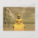 Zen buddha i sitta meditationssaldo på vatten och bredvid en bambu träd vid solnedgången